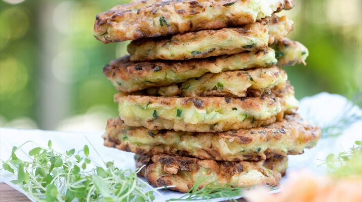 Tortitas de calabacín y queso a la plancha, placer culinario
